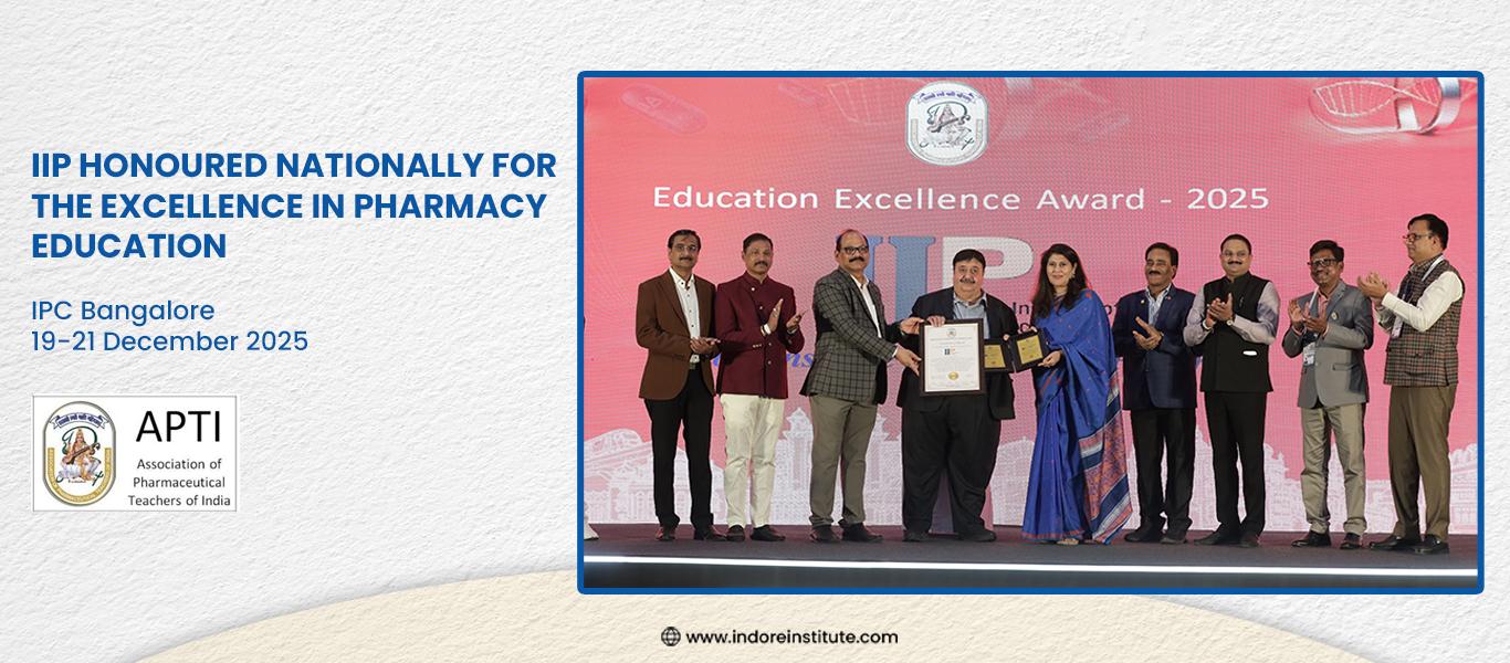 Indore Institute of Pharmacy (IIP) has been awarded the Education Excellence Award 2025 at the prestigious Indian Pharmaceutical Congress (IPC) held in Bengaluru from 19t o ... Read More